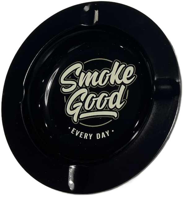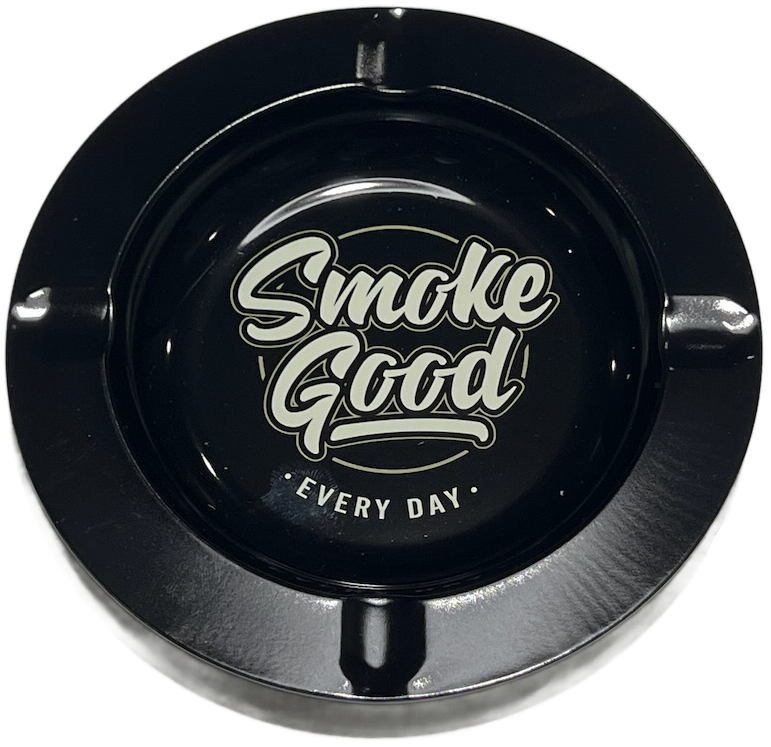 A timeless black ashtray made from durable, easy-to-clean metal. Features three notched rests and the bold SmokeGood “EVERY DAY” logo centered for a clean, stylish touch. A perfect staple for home setups, patios, or personal use. Rugged, functional, and brand-forward.
