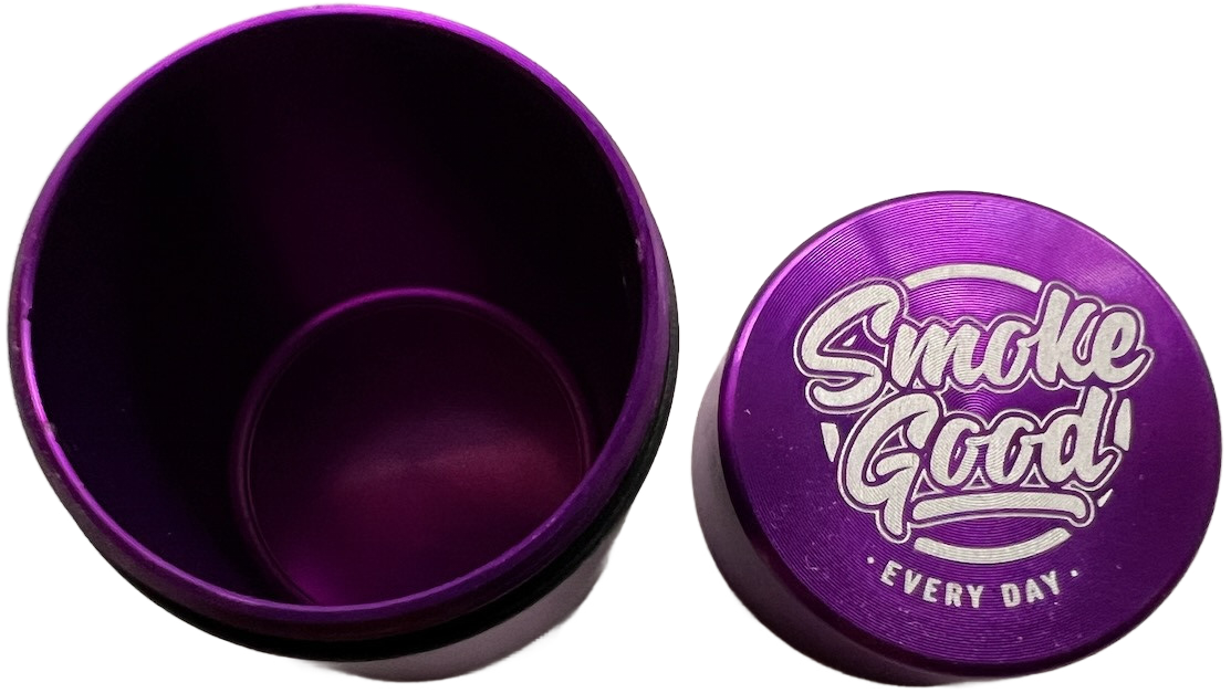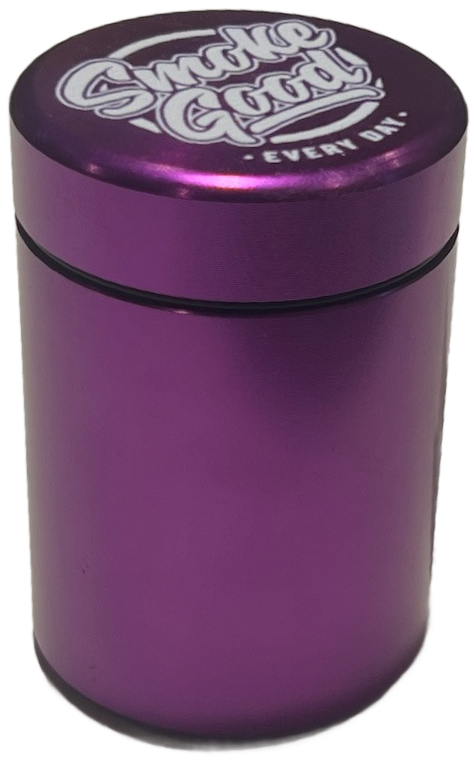 This vibrant metallic purple stash jar by SmokeGood features an airtight twist-seal lid for maximum freshness. Crafted from lightweight aluminum, it’s perfect for storing flower, herbs, or other small valuables. Finished with SmokeGood’s signature “EVERY DAY” engraving, this sleek jar blends portability, discretion, and everyday style.